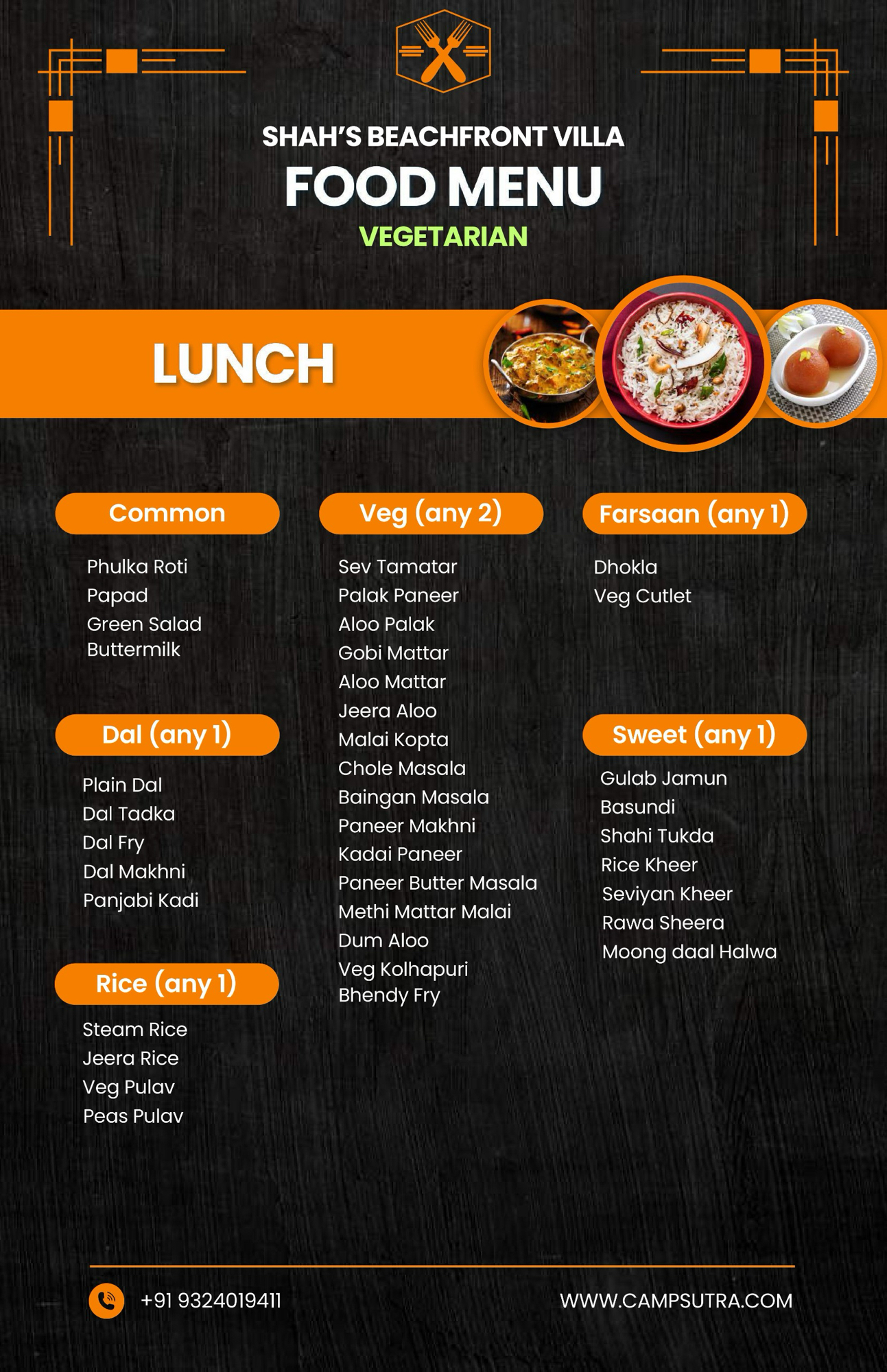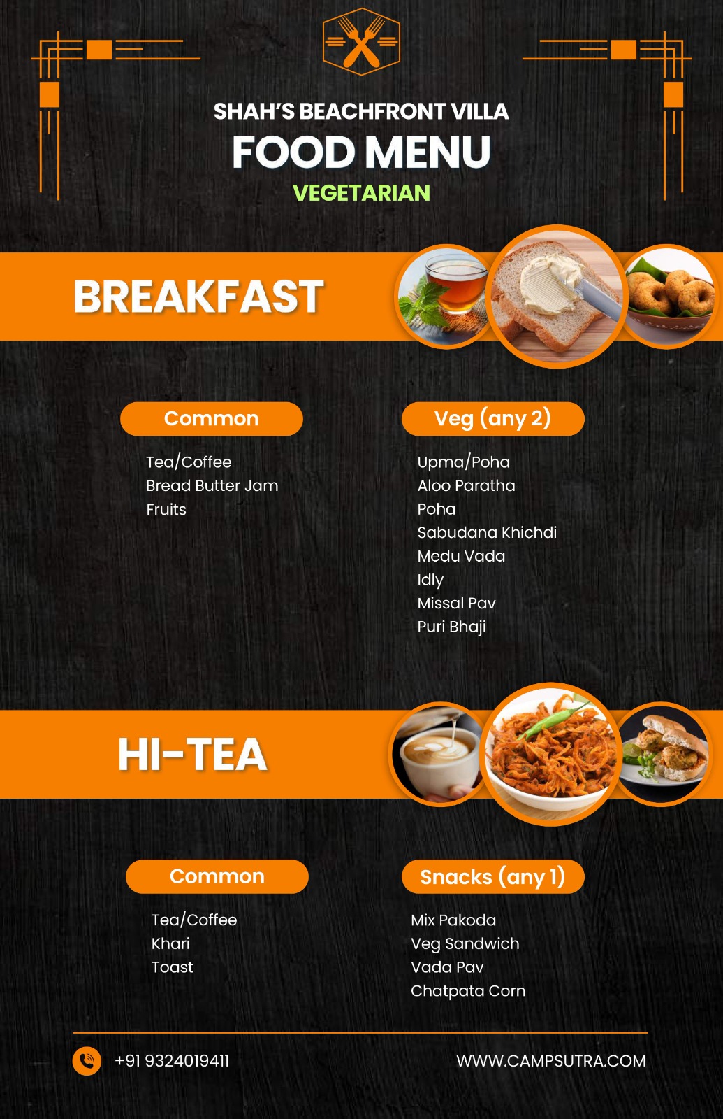 We have professional chef, Meal package is mandatory to be taken from property at additional cost of ₹1400 per adult, and ₹900 per child. The Package includes all meals (lunch, hitea, dinner and breakfast).